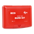Röd, hård första hjälpen väska mot brännskador med vita detaljer och text. Etikett: Snabb lindring vid bränskada.
